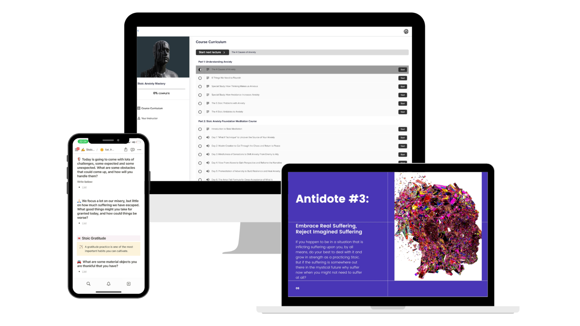 Quick quizzes cement the science and Stoic mindset that keeps anxiety from snowballing.