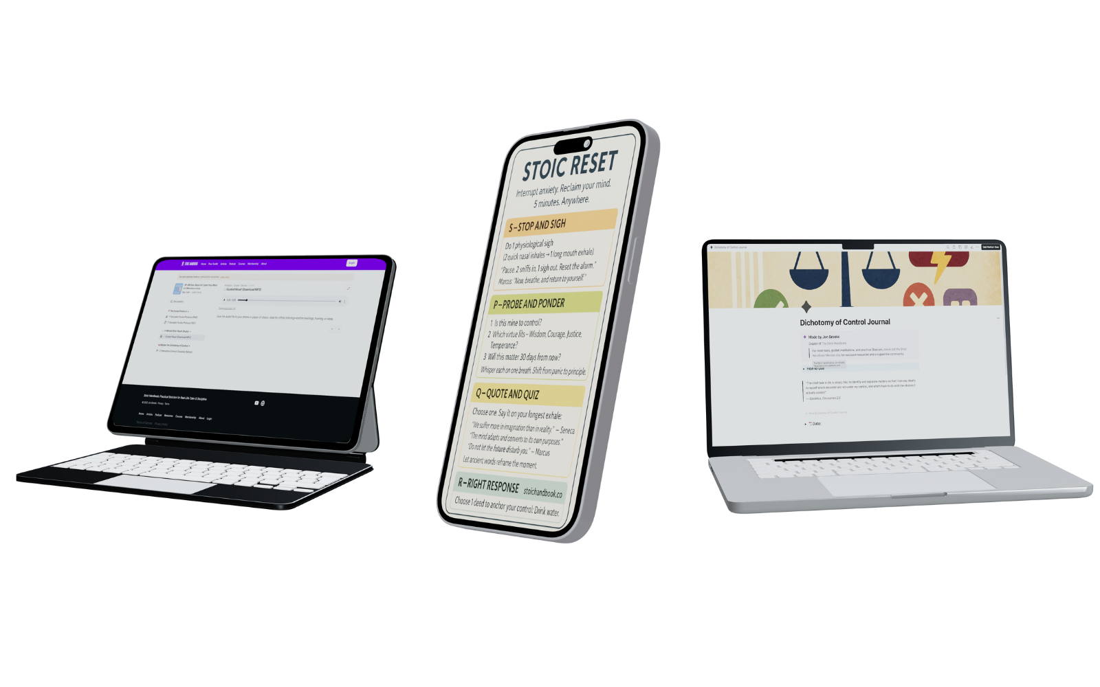 Ancient Stoic wisdom → validated by modern CBT → distilled into a 5-minute micro-routine.